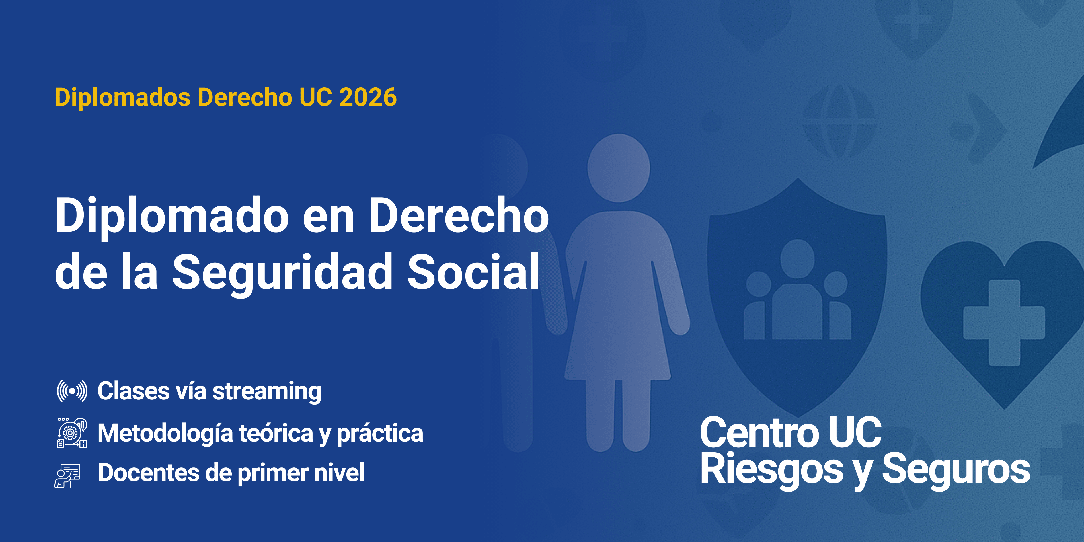 El Diplomado en Derecho de la Seguridad Social tiene como propósito presentar y analizar los fundamentos y los contenidos actuales de la seguridad social y sus regímenes: pensiones, salud, riesgos profesionales, cesantía, prestaciones a la familia, más las prestaciones complementarias.